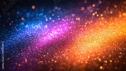Vibrant abstract background with swirling, multicolored bokeh lights. A blend of blues, purples, and oranges creates a dynamic, glittering effect