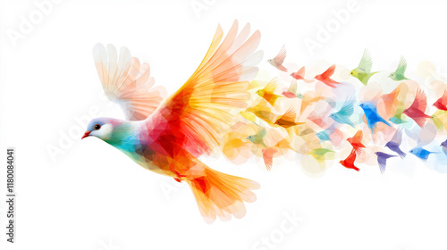 Vibrant Abstract Birds in Flight with Rainbow Colors on White Background