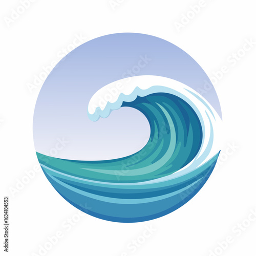 Vibrant Abstract Blue Ocean Wave Illustration with White Foam in a Circular Frame