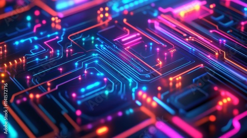 Vibrant Abstract Circuit Board Design with Neon Light Effects