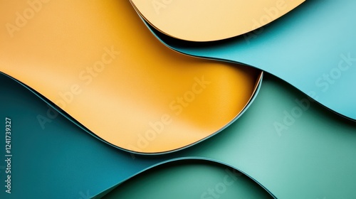 Vibrant Abstract Curves in Yellow and Teal Color Palette Design