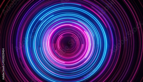 vibrant abstract design with neon blue and magenta concentric circles on black background