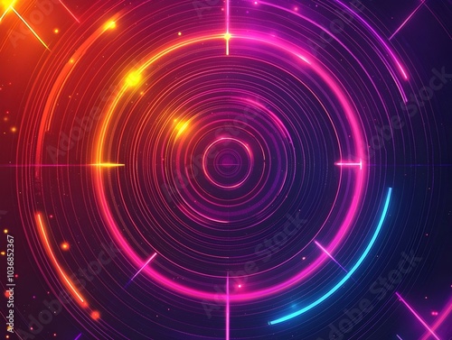 Vibrant abstract digital artwork featuring concentric circles in vivid shades of pink, purple, and orange, radiating energy and dynamic motion.