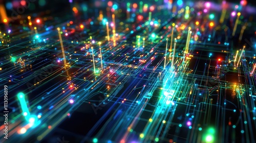 Vibrant Abstract Digital Circuitry with Colorful Lights and Effects