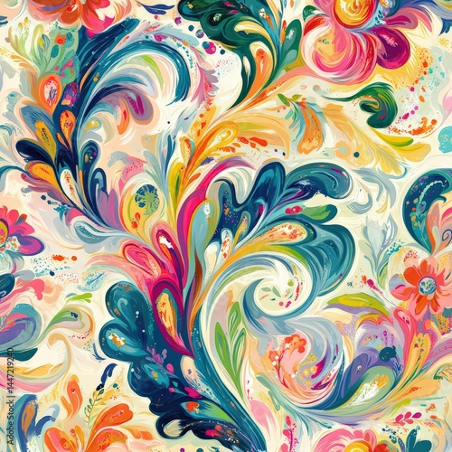 Vibrant Abstract Floral Swirls in Colorful Artistic Pattern Design