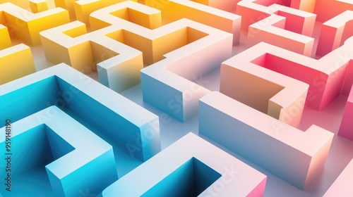 Vibrant abstract folded paper maze in dynamic colors, rendered in 3D on a white background, for a modern visual design