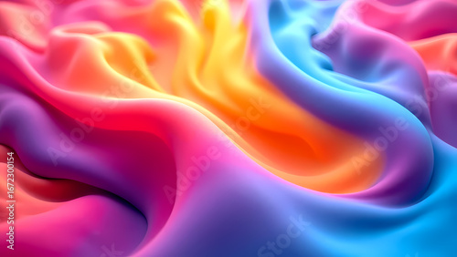 Vibrant, abstract image featuring flowing waves of colorful fabric like textures in shades of pink, orange, and blue, creating dynamic and energetic visual effect