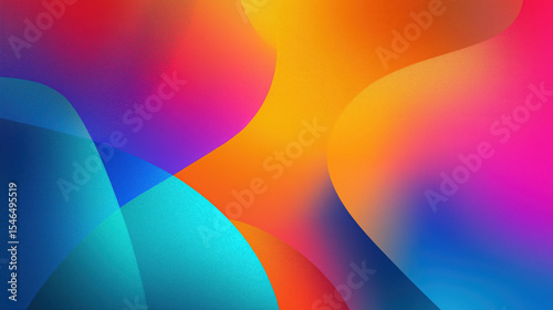 Vibrant abstract image with joyful fusion of warm and cool hues, featuring smooth gradients of orange, pink, blue, and purple. flowing shapes create dynamic and energetic composition
