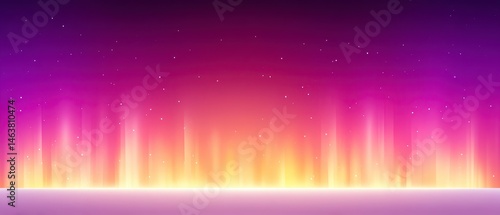 Vibrant abstract landscape with colorful gradient and floating elements.