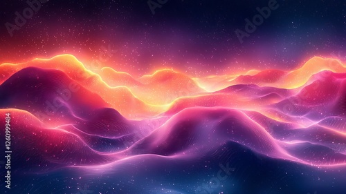 Vibrant abstract landscape with glowing waves in shades of pink and purple, evoking a sense of tranquility and wonder, perfect for creative projects and digital backgrounds.