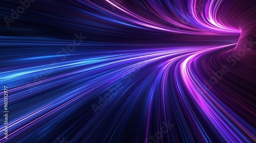 Vibrant abstract light trails in blue and purple create a dynamic sense of movement, perfect for futuristic themes and backgrounds.