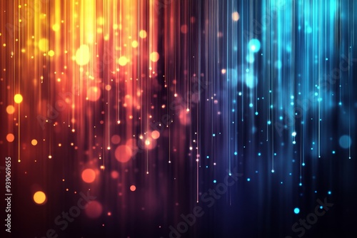 Vibrant Abstract Light Trails in Warm and Cool Tones, Vertical Streaks with Bokeh and Glowing Particles