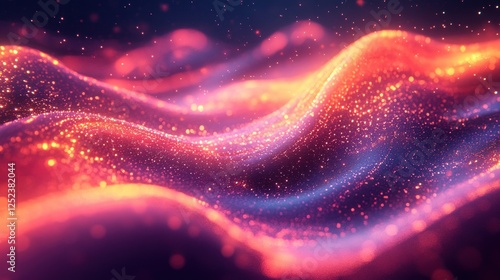Vibrant Abstract Neon Ribbons with Glowing Particles in Cyberpunk Style