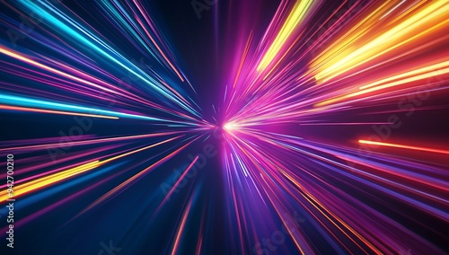 Vibrant Abstract Neon Streaks Creating Futuristic Warp Effect