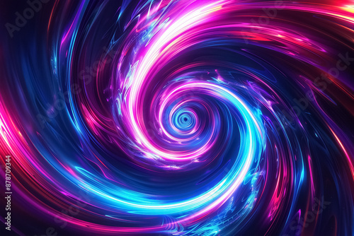 Vibrant abstract neon swirl in shades of pink, blue, and purple with dynamic, flowing lines creating a mesmerizing spiral effect. high quality