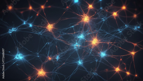 Vibrant abstract network of lights offering a futuristic feel. Abstract neural network concept with glowing nodes and connections detailed