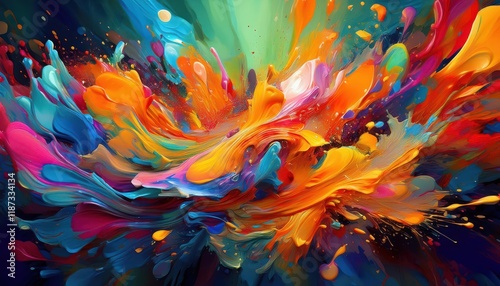 Vibrant Abstract Paint Splashes in a Dynamic Display A Mesmerizing Palette of Colors Swirling in an Artistic Frenzy