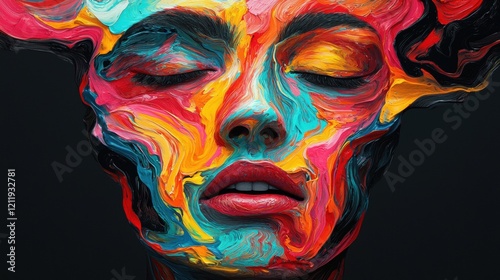 Vibrant Abstract Portrait Swirls of Color and Emotion