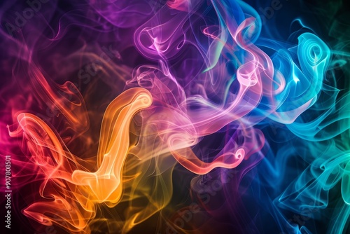 Vibrant Abstract Smoke Patterns with Colorful Swirls on Dark Background - Suitable for Prints and Posters