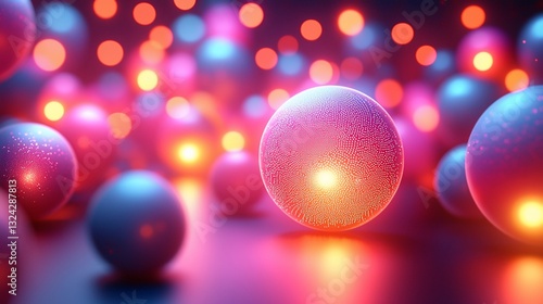 Vibrant abstract spheres glowing in a colorful digital landscape, creating a mesmerizing effect