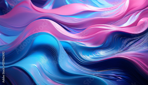 vibrant abstract surface with flowing waves in shades of blue and pink reflecting light in a modern art style