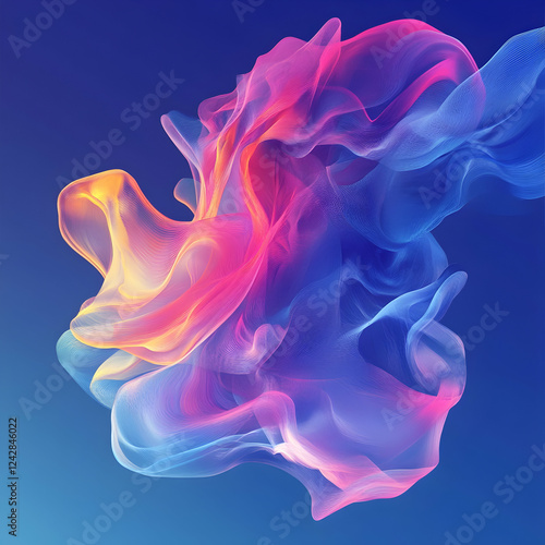 Vibrant abstract swirl of colorful smoke-like patterns floating against a deep blue background