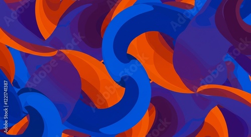 Vibrant Abstract Swirls: Bold and dynamic abstract design with a mesmerizing pattern of swirling shapes, rendered in a rich palette of orange and blue hues, offering a contemporary visual experience.