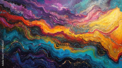 Vibrant Abstract Swirls of Colorful Paint on Canvas Artwork