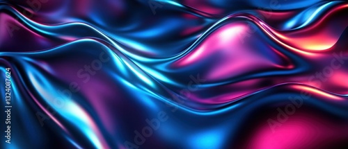 Vibrant Abstract Textile Waves in Blue and Pink Hues with Glossy Finish