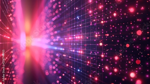 Vibrant abstract visualization of light particles and grids creating a dynamic digital atmosphere