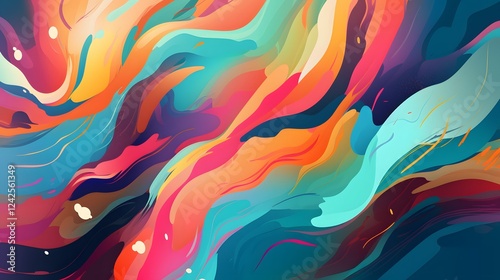 Vibrant abstract waves, colorful swirling patterns creating dynamic flow, ideal for creative projects or artistic displays.