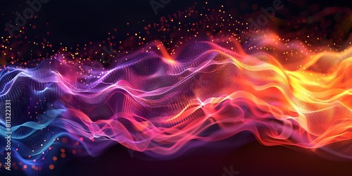 Vibrant abstract waves in blue and red with sparkling particles