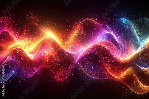 Vibrant abstract waves of colorful light on a dark background creating dynamic energy