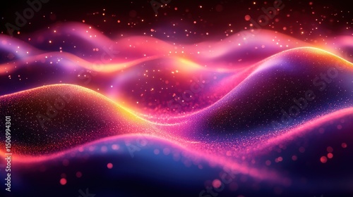 Vibrant Abstract Waves with Glittering Particles in Dark Background