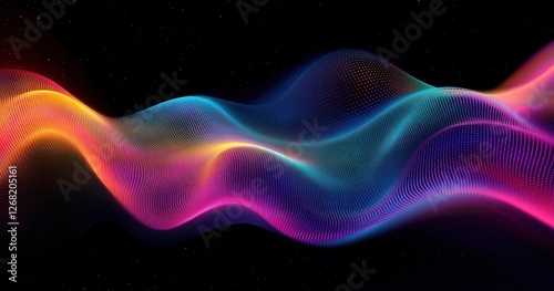 Vibrant Abstract Wavy Lines in Neon Colors on Dark Background Digital Art Illustration
