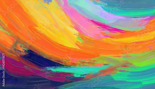 Vibrant Abstraction A Panoramic Colorful Artwork Showcasing Rich Textures and a Striking Background, Perfect for Modern Digital Art, Home Decor, or Design Inspiration.