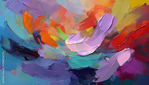 Vibrant Abstraction Modern Oil Painting Showcasing Dynamic Color Palette and Expressive Brushwork on Canvas