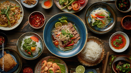 Vibrant and appetizing Vietnamese cuisine under beautiful, realistic lighting
