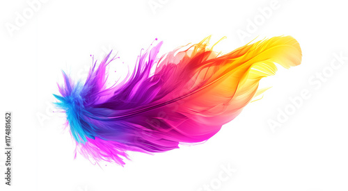 Vibrant and colorful paint splash with a feather-like shape isolated on a clean white background
