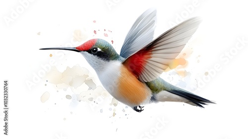 Vibrant and Colorful Watercolor of a Hummingbird with Delicate Hand Drawn Details Isolated on a White Background Perfect for Summer and Nature Inspired Designs