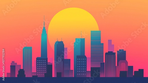 Vibrant and dynamic cityscape with a neon pop art inspired skyline and colorful futuristic architectural elements Backdrop for urban business and financial themes