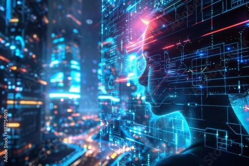 Vibrant and dynamic cyberpunk meeting scene with neon lights against a dark, realistic background High-resolution, atmospheric depiction capturing futuristic ambiance