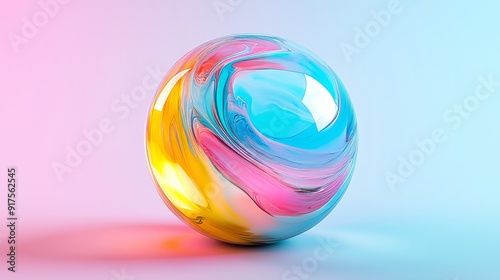 Vibrant and Glossy Abstract Sphere with Colorful Swirls