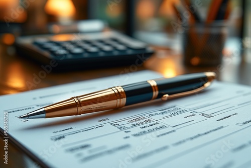 Vibrant and Vivid Blank Sales Invoice Document with Pen Ready for Professional Business Use