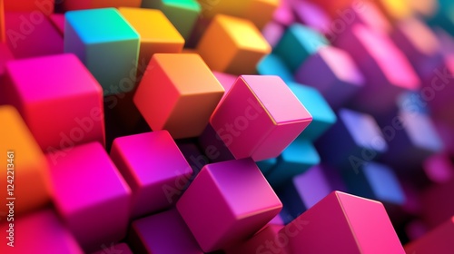 Vibrant Arrangement of Colorful Cubes Creating a Striking Abstract Pattern in a Digital Art Piece