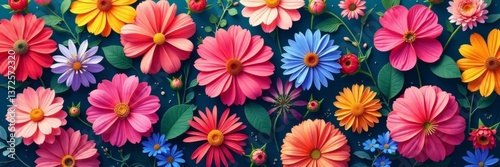 Vibrant array of blooming flowers in a seamless pattern, colorful, floral, vibrant