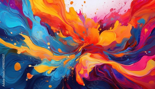 Vibrant Artistic Background A Kaleidoscope of Paint Splashes Illuminating a Creative Canvas at Dusk