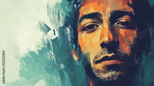 Vibrant artistic portrait of a man with abstract brush strokes and warm colors creating an expressive and contemplative mood