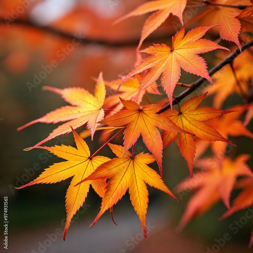 Vibrant autumn forest maple leaves High Quality AI Generated Image