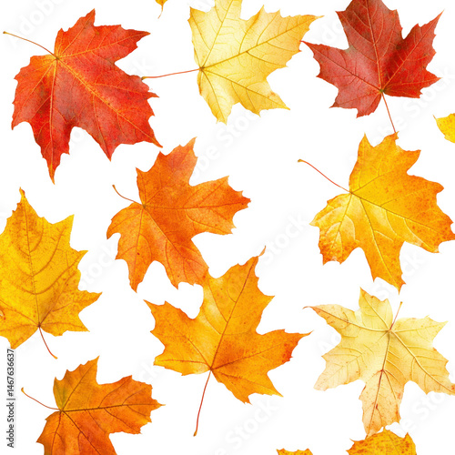 Vibrant autumn leaves falling nature high-quality images colorful environment isolated on transparent background